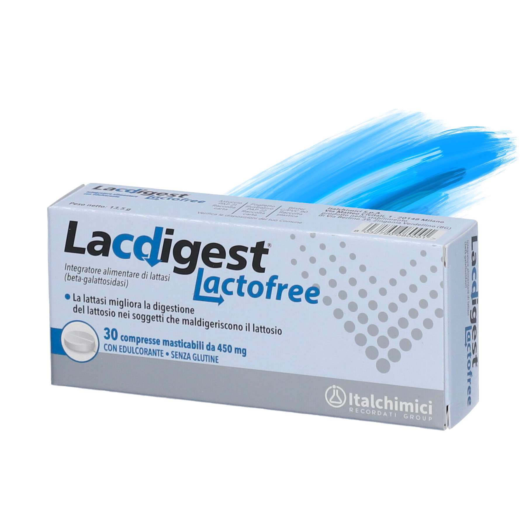 Ogni compressa di Lacdigest Lactofree contiene 4500 FCC* di lattasi, l'enzima essenziale per la digestione del lattosio. Questo enzima scompone il lattosio in zuccheri più semplici, permettendo a chi è intollerante di digerire meglio latte e derivati. L'assunzione di lattasi prima dei pasti aiuta a prevenire i fastidiosi sintomi dell'intolleranza, come gonfiore, crampi e diarrea, favorendo la digestione.
